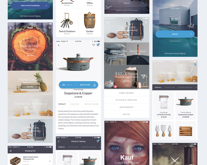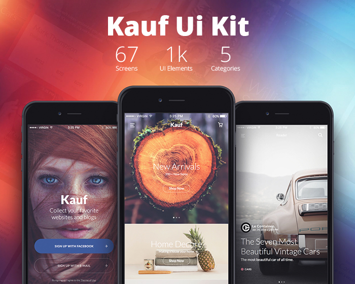 Kauf UI iOS Kit is the first interaction ready, high quality premium pack of 67 handcrafted stress-free screens, meant to speed up your design workflow.